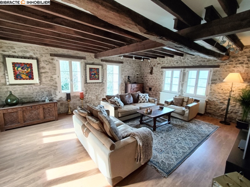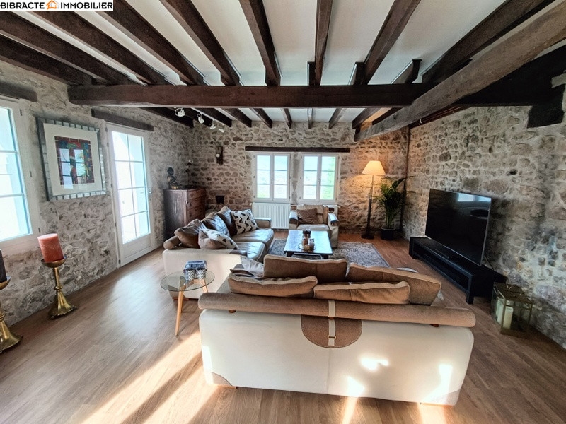 Longère du 18e siècle magnifiquement rénovée dans un endroit calme avec piscine, belles vues, 3,3 ha de forêt et de prairie privées. Chemin d'accès d'environ 150 mètres. Abri pour voiture et grange avec abri.La maison se compose comme suit : rez-de-chaussée : salon (31m2), cuisine spacieuse (48m2) avec cuisine équipée et cheminée d'origine avec poêle à bois, couloir donnant accès à la chambre 1 (12m2 avec armoire), buanderie avec lave-linge/sèche-linge, WC, salle de bains avec douche et lavabo, hall d'entrée avec vestiaire, chambre 2 spacieuse (32m2) avec cheminée et poêle à bois. 1er étage : grenier spacieux avec 1 appartement avec entrée séparée avec salle de bain et WC (éventuellement à louer comme maison d'amis), grande pièce (47m2) et chambre 3 (24 m2). Cave voûtée sous la maison. Jardin, piscine 11 x 5 mètres (2023) avec filtre à eau salée et entourée d'une grande terrasse, avec abri, cour pavée, plusieurs arbres comme pommier, prunier, noyer et plusieurs châtaigniers. Grande prairie et forêt privée avec ruisseau et sentier pédestre. Chauffage central au gaz pour tout le rez-de-chaussée et 2 poêles à bois. Portes et fenêtres en double vitrage (novembre 2024). Internet par fibre optique (télévision française) et antenne parabolique (Canal Digital). Eau de ville et trois puits
