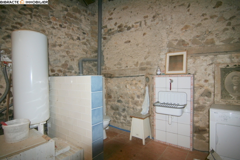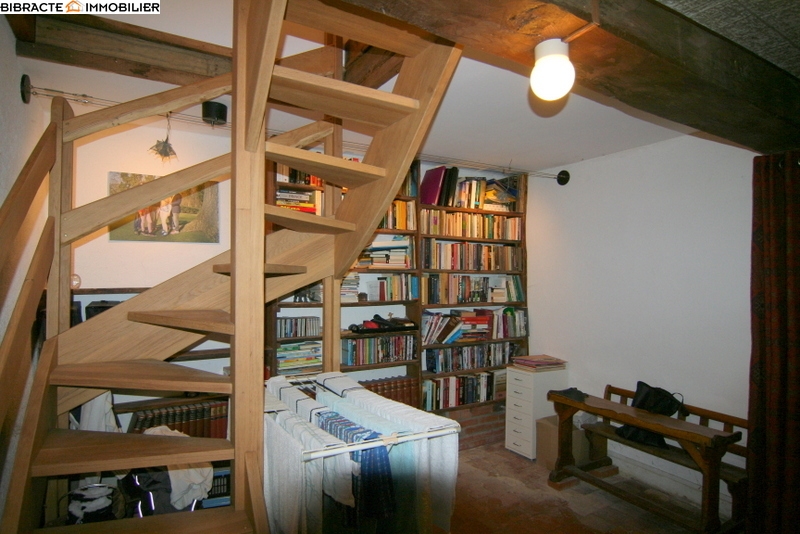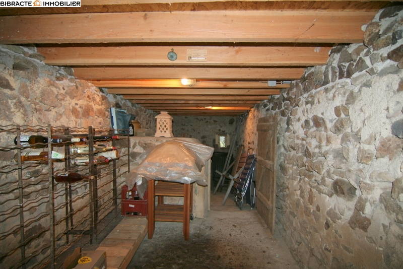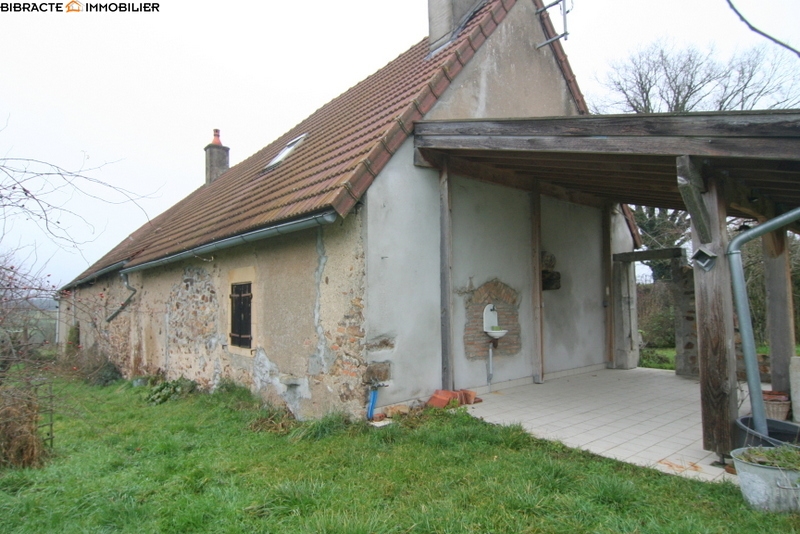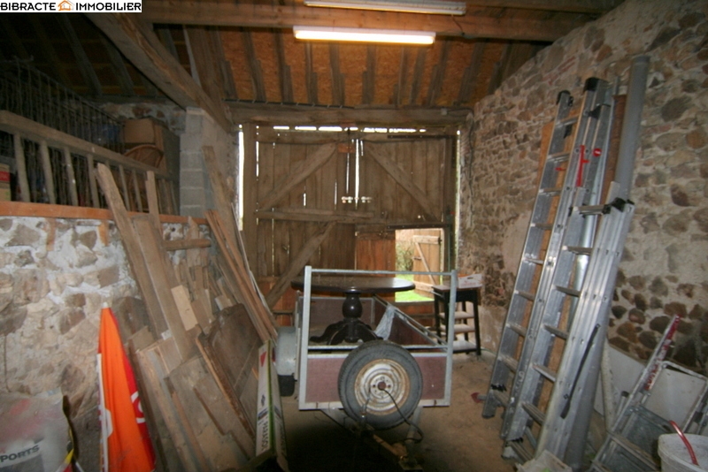 La maison d'habitation avec terrasse couverte, se compose d'un séjour avec cuisine, poêle à bois et cellier, un bibliothèque avec escalier qui mène à l'étage, une chambre, un salon avec cheminée et poêle a bois et une salle d'eau avec lavabo, douche et WC. A l'étage un bureau et une grande chambre. Frenier. Attenant un garage avec wc, lavabo, buanderie et chauffe-eau, une cave, un atelier/écurie avec escalier vers le grenier, plusieurs remises. Le mobilier est inclus. Entouré d'un jardin avec verger et puits sur 879m2 de terrain.