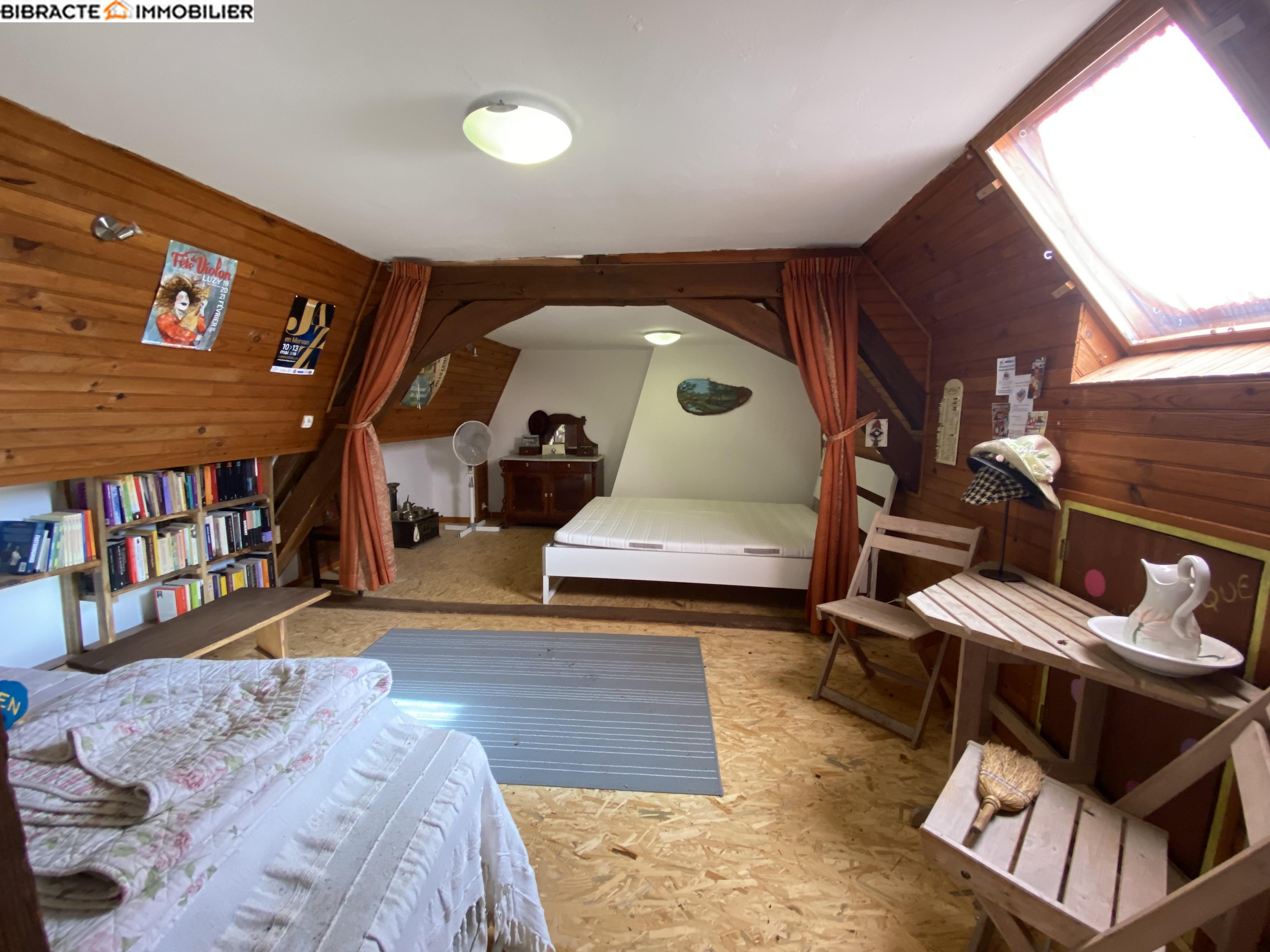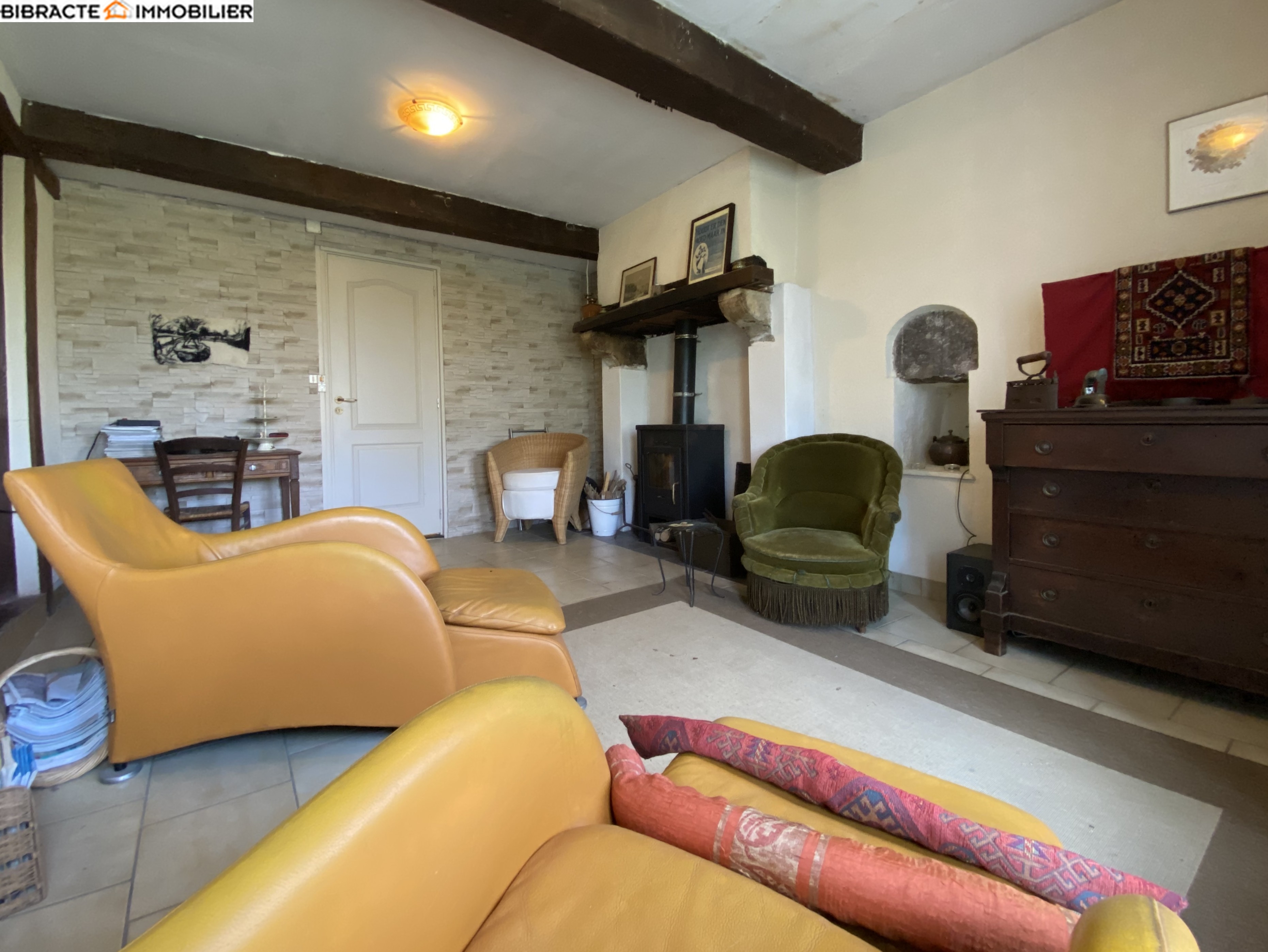 La maison, à la toiture rénovée, se dresse sur un terrain de 879 m². Elle est entourée d'un jardin (avec puits) et d'un verger. Sur le côté il y a une terrasse couverte, récemment aménagée. L'entrée principale donne sur une belle cuisine ouverte avec un élégant poêle à bois et un garde-manger. À droite de la bibliothèque, avec un escalier menant à l'étage, se trouve la première chambre. On accède ensuite au salon où l’on trouve un second poêle à bois. La salle de bains attenante est rénovée et comprend une douche, des toilettes et un lavabo. À l'étage il y a un bureau et une grande chambre. Un grenier spacieux complète cet espace. Plus loin dans la longère il y a un garage avec toilettes, lavabo, buanderie et chaudière. Attenants au garage, il y a la cave, un atelier/une écurie avec un escalier menant au grenier, ainsi que plusieurs remises. La fosse septique (système Biorock) date de 2011. L'électricité, la plomberie et le système d'assainissement ont été entièrement refaits. Le mobilier est inclus dans le prix.