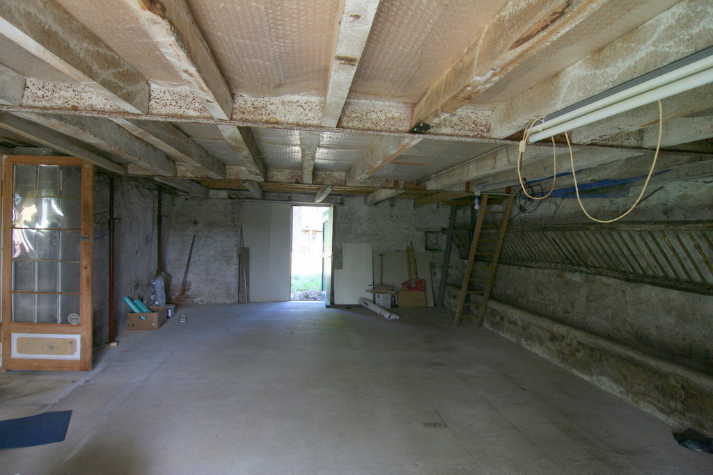 Dans un hameau calme vous pouvez profiter d'une maison spacieuse de 110m2 en cours d'aménagement avec grenier aménageable et grand garage le tout sur 1315m2 de terrain. La maison d'habitation se compose d'un séjour (29m2) avec bar, coin cuisine et cheminée avec poêle à bois, un WC (2m2), un séjour (ancien écurie) (50m2) avec portes-fenêtres vers le jardin et escalier vers le grenier aménageable, une chambre/pièce (24m2). Attenant un grand garage 56m2 avec atelier. Terrasse couvert et un dépendance avec grange et remises. Cour, jardin et un potager/terrain en face. Assainissement conforme. Toiture en bon état.