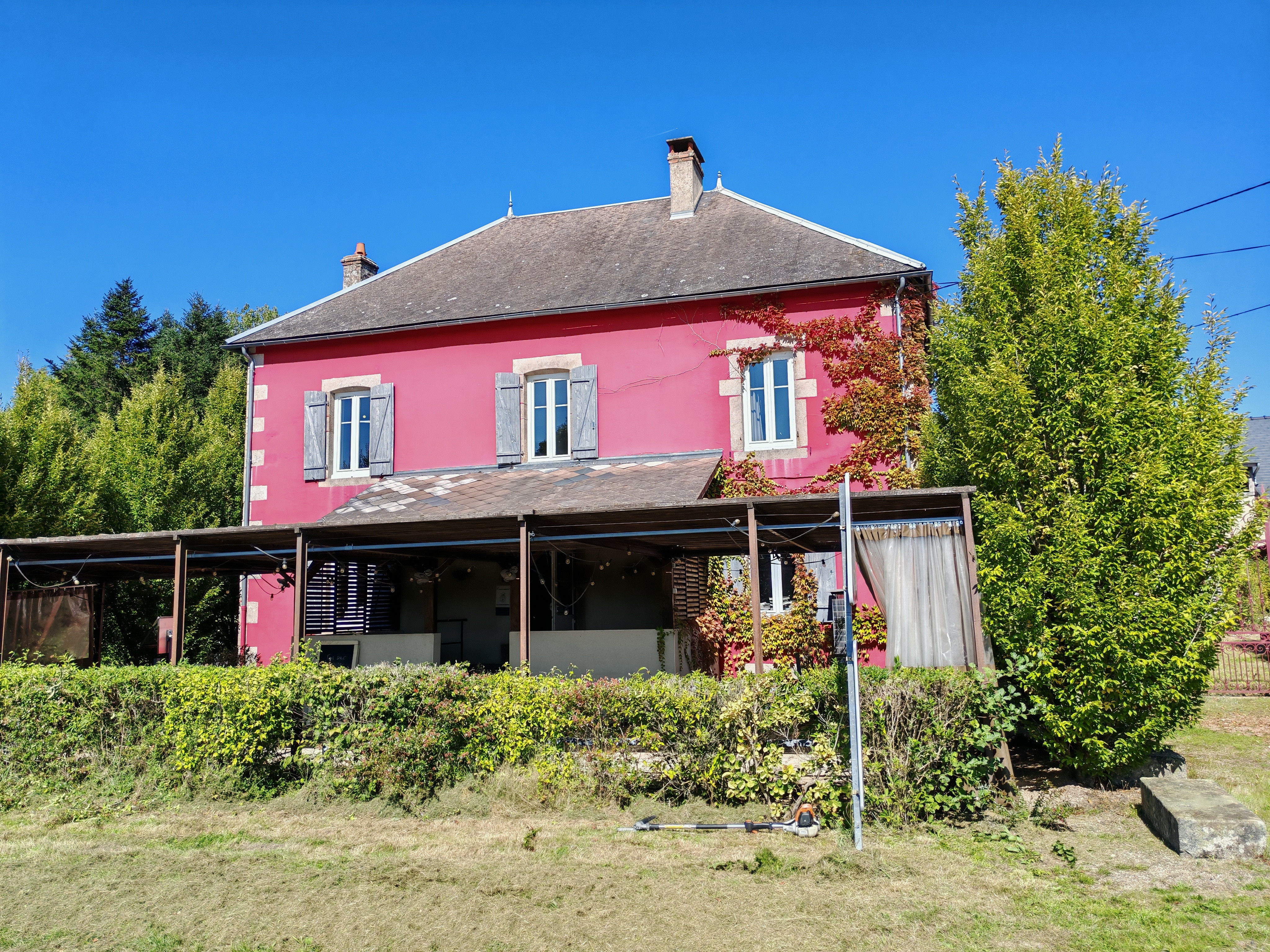 - Un ancien restaurant avec une terrasse couverte , une salle principale de 60m² avec bar et poêle a bois, une deuxième salle de 30 m² ,une cuisine de 40m² et des sanitaires .