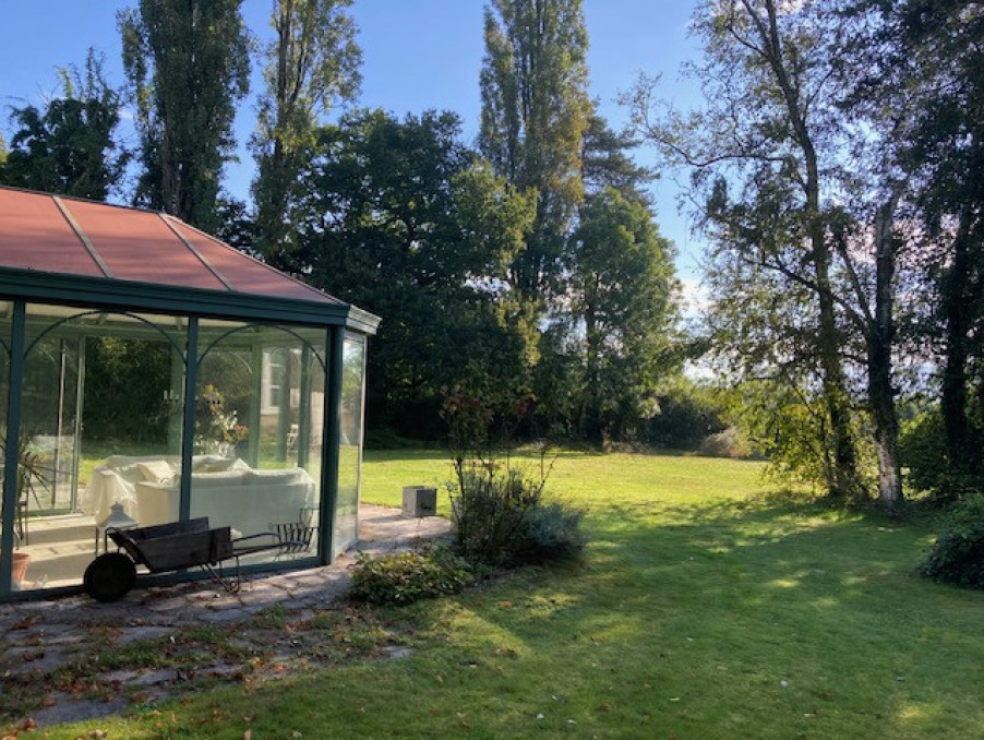 WC sous l'escalier principal et vaste véranda carrelée de 22 m2 (édifiée en 2012) donnant sur le parc.