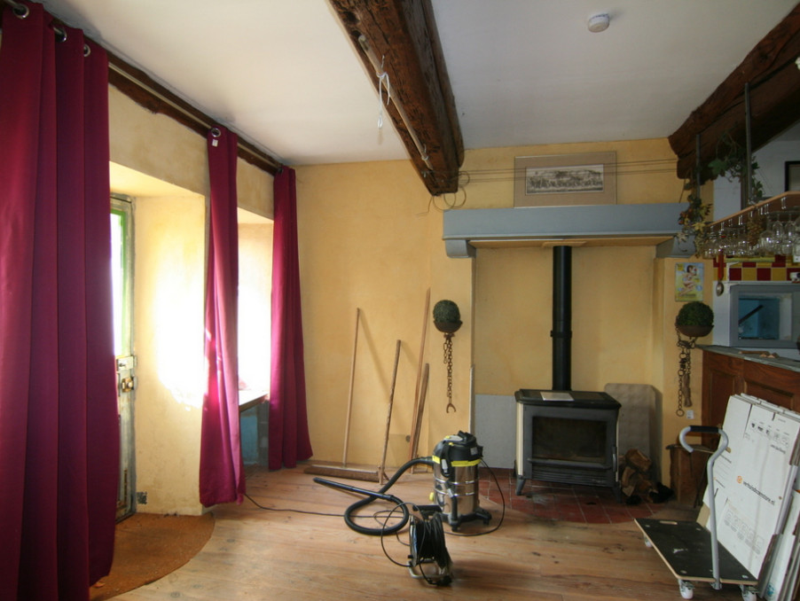 In een rustig gehucht kunt u genieten van een ruim huis van 110 m² dat momenteel wordt gerenoveerd, met een inrichtbare zolder en een grote garage op een terrein van in totaal 1315 m². Het woonhuis bestaat uit een woonkamer (29 m²) met bar, keukenhoek en open haard met houtkachel, een toilet (2 m²), een woonkamer (voormalige paardenstal) (50 m²) met openslaande deuren naar de tuin en trap naar de in te richten zolder, een slaapkamer/kamer (24 m²). Aangrenzend een grote garage van 56 m² met werkplaats. Overdekt terras en een bijgebouw met schuur en opslagruimtes. Binnenplaats, tuin en een moestuin/terrein aan de overkant. Micro station conform. Dak in goede staat.