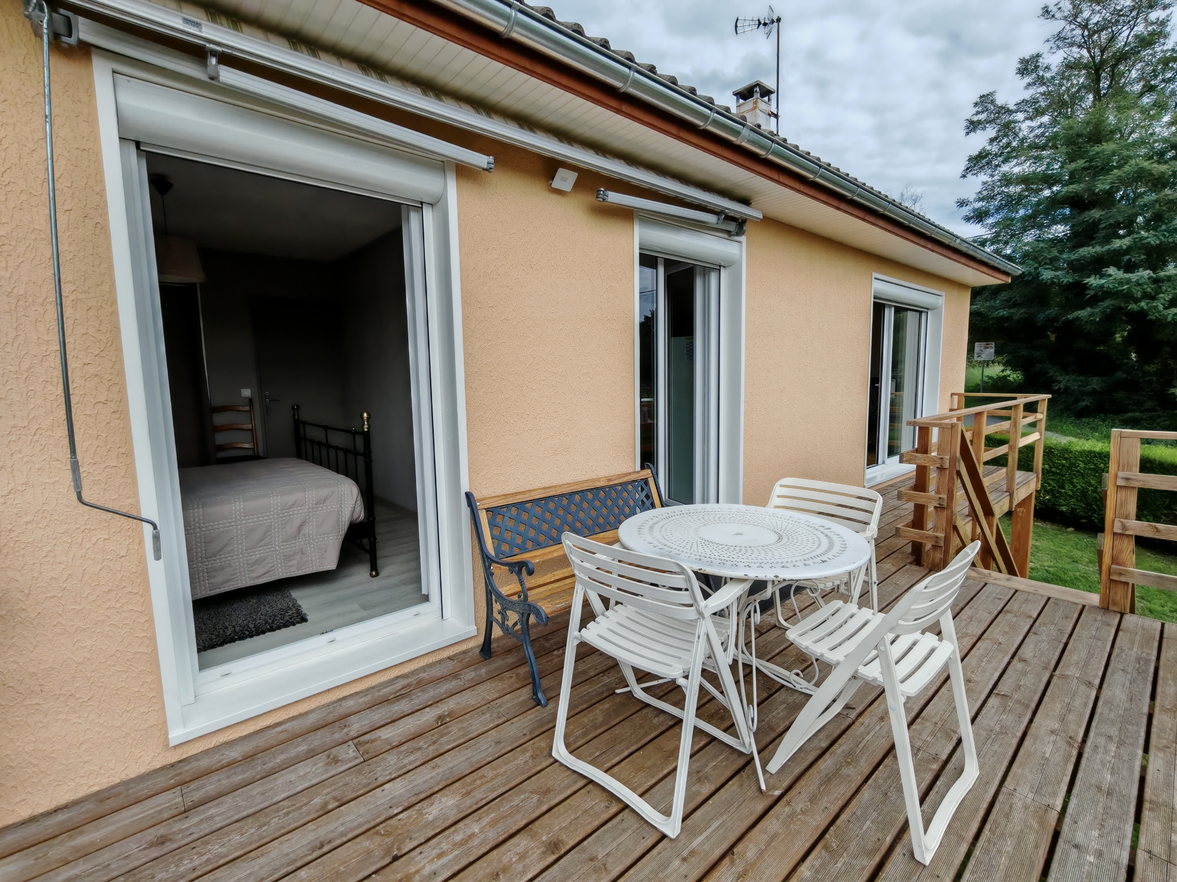 Het huis bestaat uit een hal met meerdere kasten, een lichte woonkamer die uitkomt op de ingerichte keuken en toegang biedt tot het terras, twee slaapkamers, een toilet en een badkamer met toilet.
